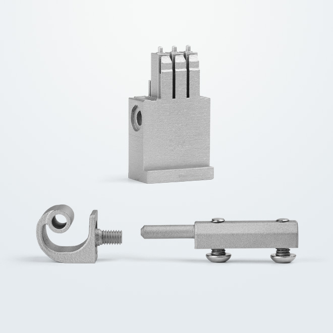 - Componenti funzionali a elevata densità in vari materiali metallici quali acciaio per utensili, acciaio inossidabile, alluminio, rame e titanio